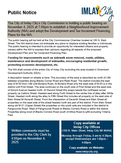 City Commission Public Hearing on November 4th, 2025 at 7:00pm