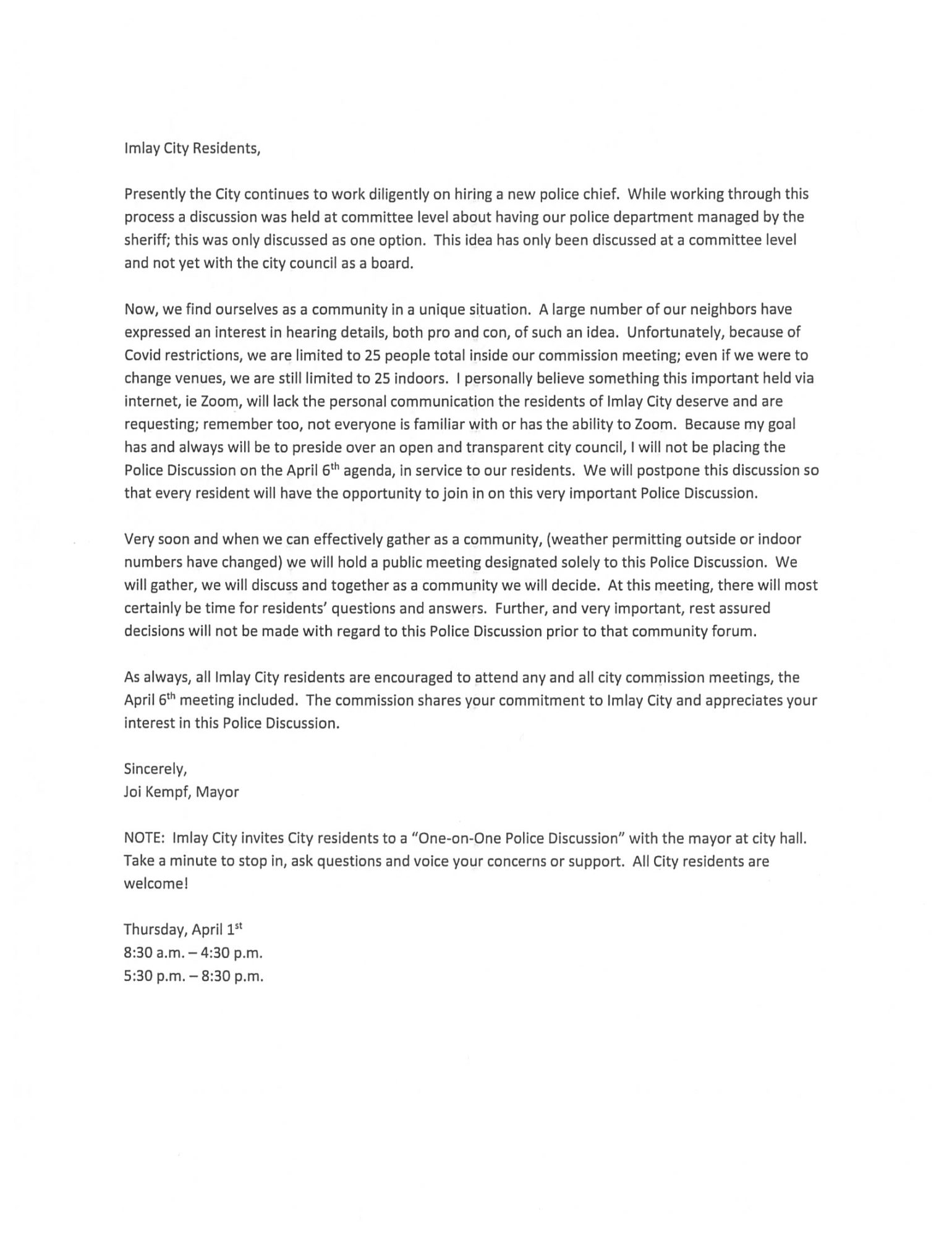 Mayor Address