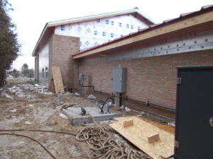 A payment slot is located on the westside of the building.